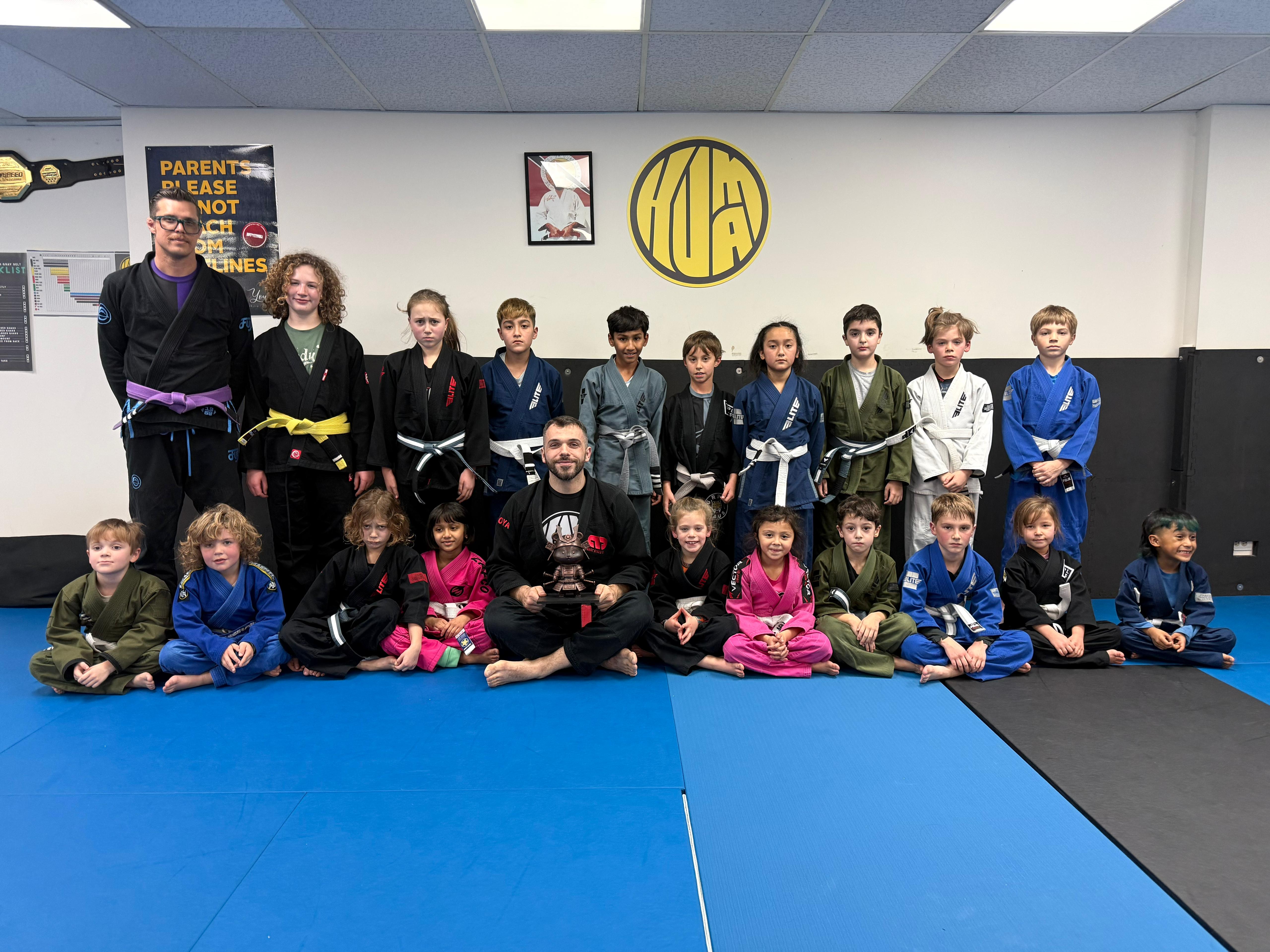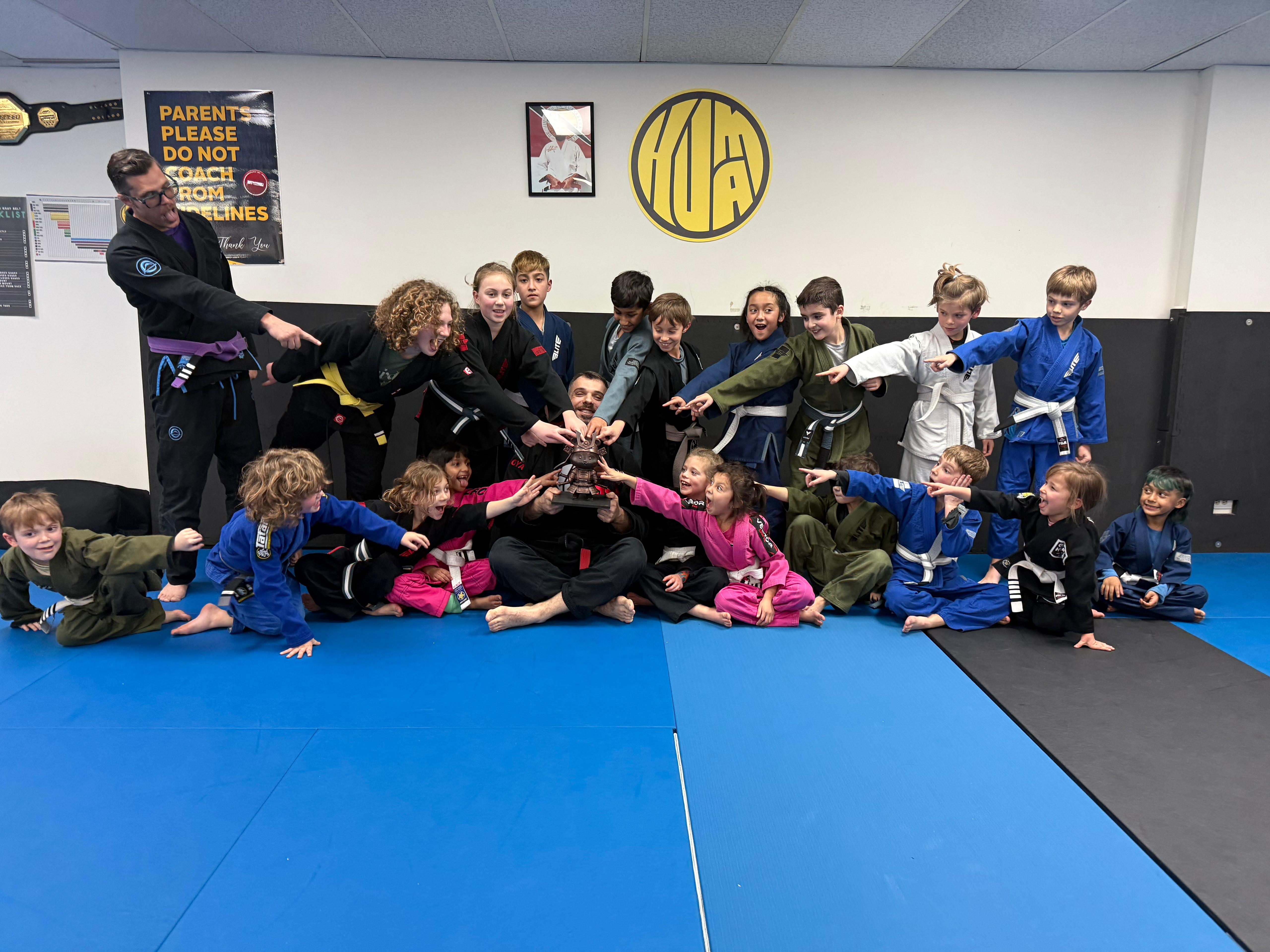 At Team Kuma Jiu Jitsu in Downers Grove our exciting Jiu Jitsu program for kids is the perfect companion to help you raise a strong, confident leader, teaching confidence, focus & self-defense skills. In our Jiu Jitsu classes for kids, students will learn valuable self-defense skills, improve their physical fitness, and develop discipline and confidence. This class is exciting and fun yet very structured, with a focus on making it easy for kids to learn and enjoy themselves while learning Jiu jitsu roots and discipline.